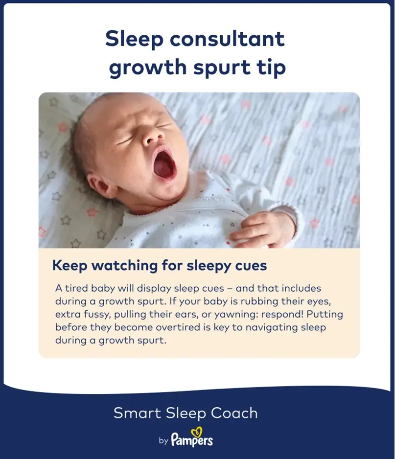 - Changes in Sleep Patterns or Sleep Regression: During a growth spurt, some babies may sleep more – and others may start sleeping less or having disrupted sleep patterns. Since growth spurts are tied to developmental milestones, and developmental milestones are tied to sleep regression, you may notice they could be too focused on learning a new skill, such as crawling, and prefer to practice instead of sleeping. With age your baby’s sleep needs will change, too – for example, a growth spurt could happen around the time it's time to drop a nap.